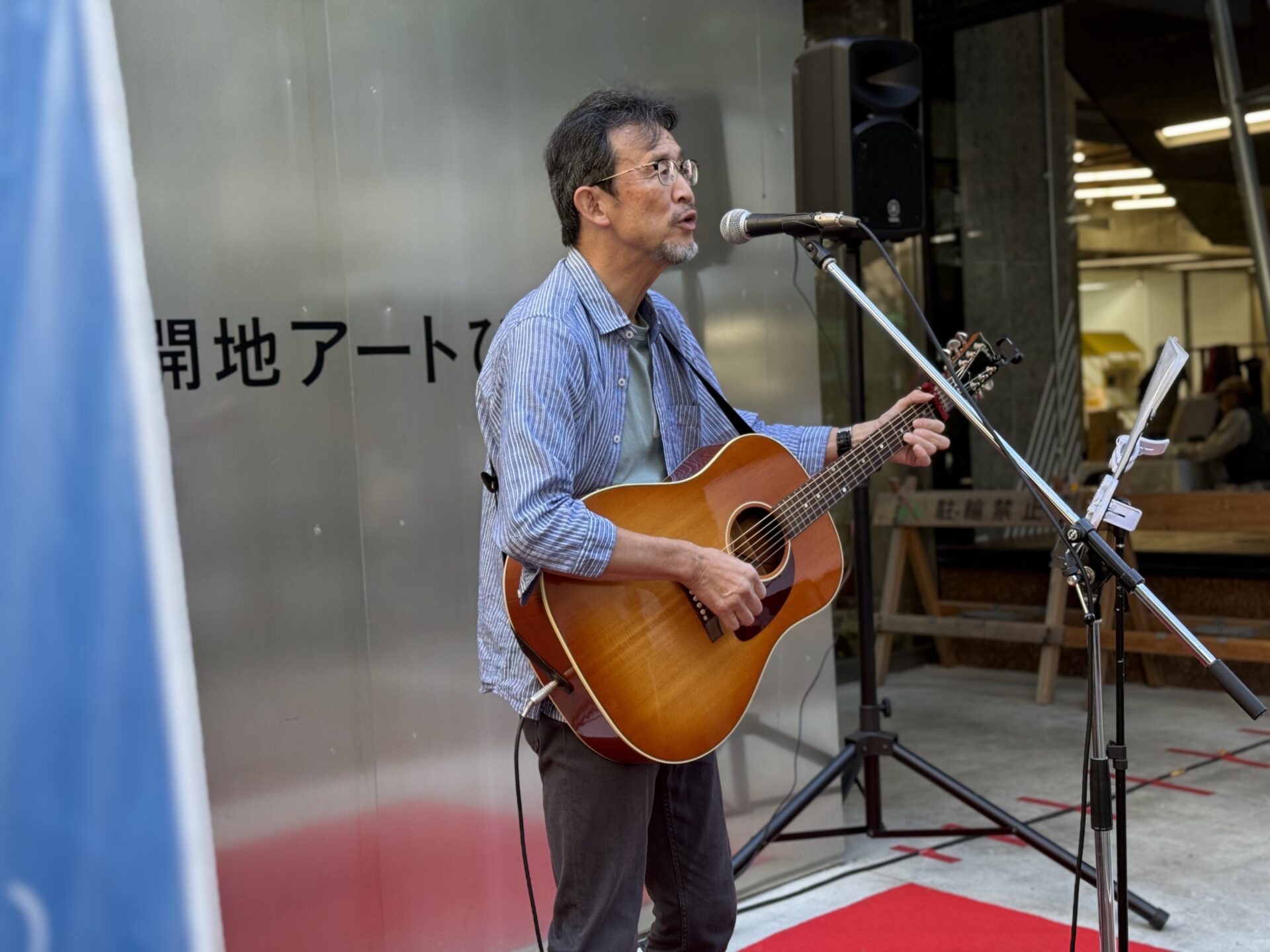 ブルーハーツさんのカバーとオリジナル曲でパフォーマンスする二人組。