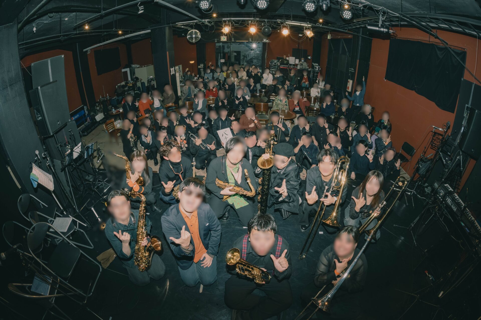 メンバーの居住地は、関西から中国四国、東海、普段の演奏ジャンルはジャズを初めファンク、吹奏楽、オーケストラなど、非常にジャンブル!!!